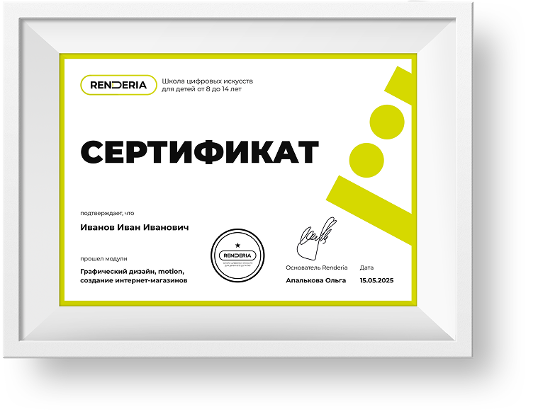Сыну 8 лет, очень просил отдать его в дизайн. Посетили пробные занятия в нескольких школах и без раздумий остановили свой выбор на RENDERIA. Внимательные наставники, хорошо продуманная система мотивации, интересные проекты. У сына это самое любимое доп. занятие.